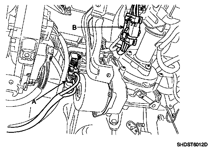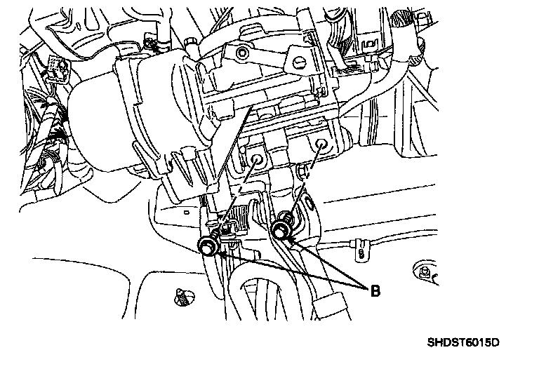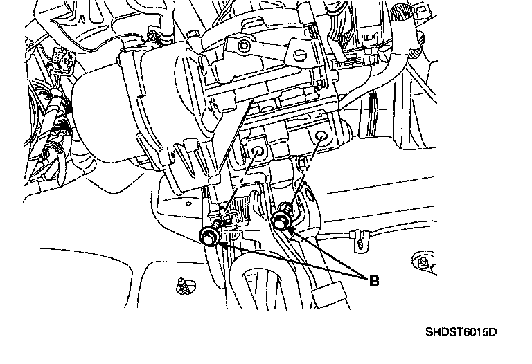 14. Remove the steering column mounting bolts (B).