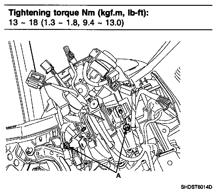 Tightening torque Nm (kgf.m, lb-ft): 13-18 (1.3-1.8, 9.4-13.0)
