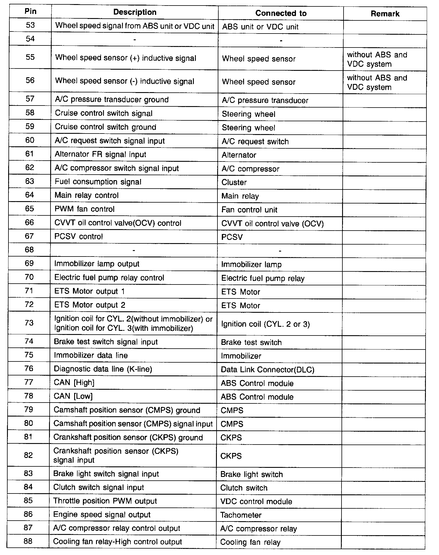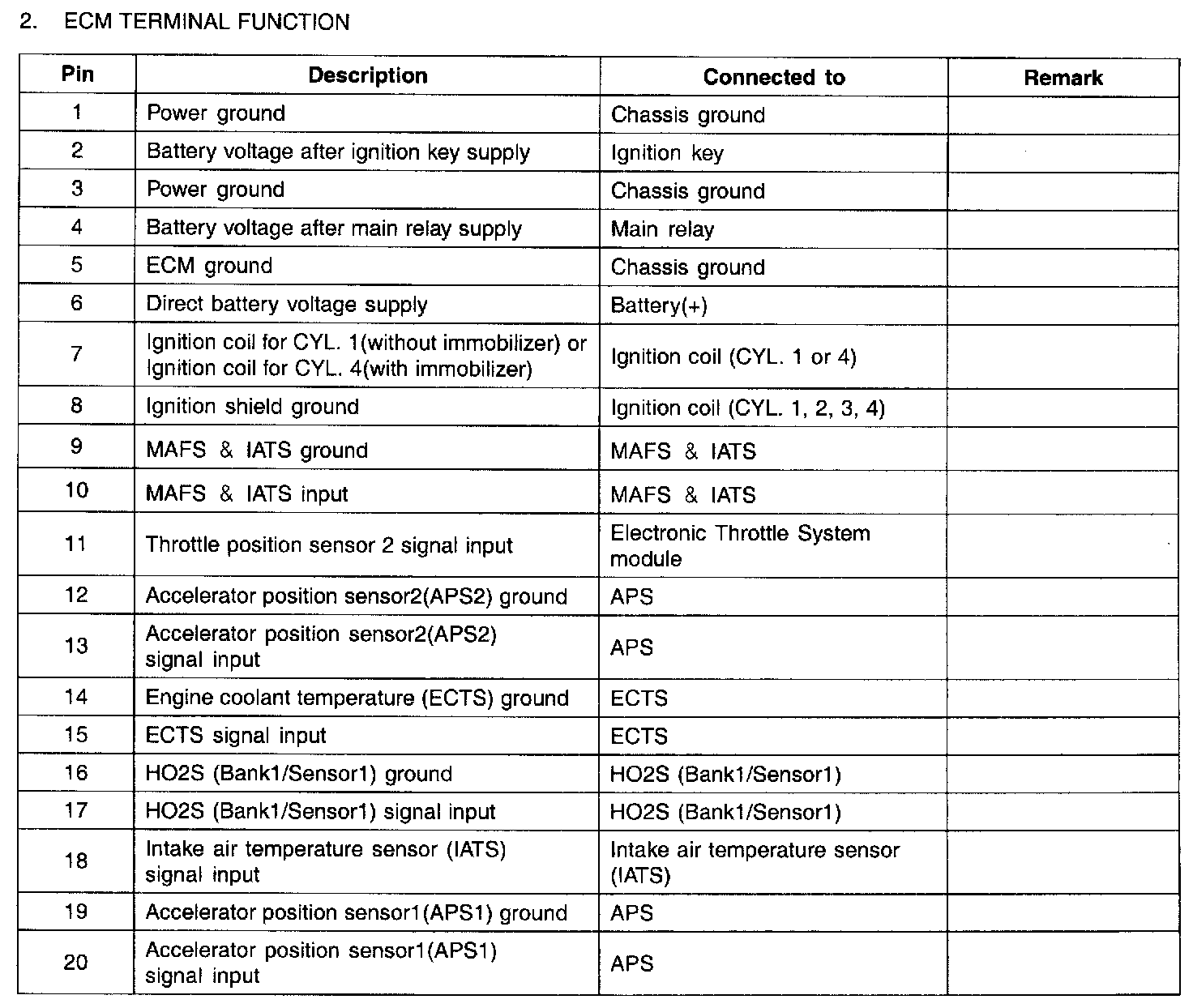 ECM Terminal Input/Output Signal Part 1:
