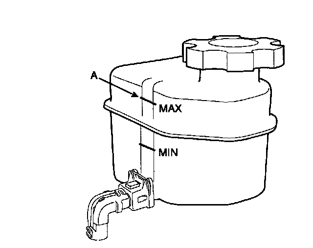 1. Make sure the brake fluid in the reservoir is at the MAX (upper) level line (A).