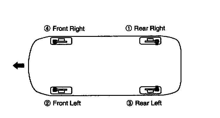 4. Repeat the procedure for wheel in the sequence shown until air bubbles no longer appear in the fluid.