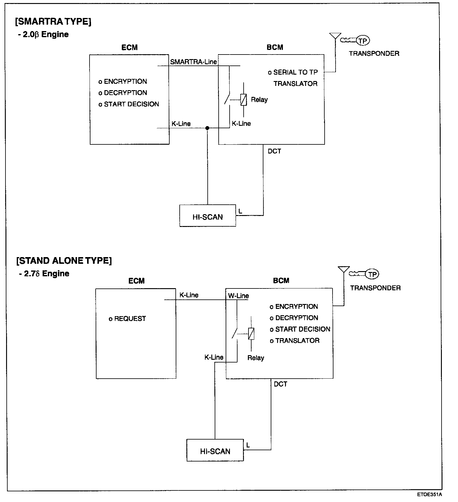 The "Stand alone" type immobilizer system is applied to the 2.7 Delta engine.
