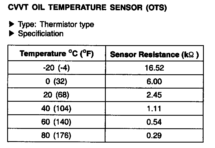 CVVT Oil Temperature Sensor (OTS) - Specification: