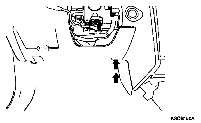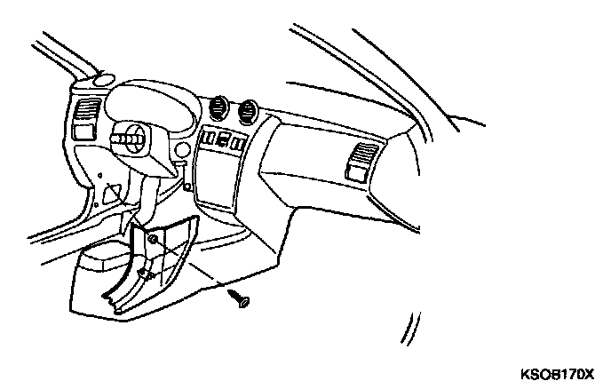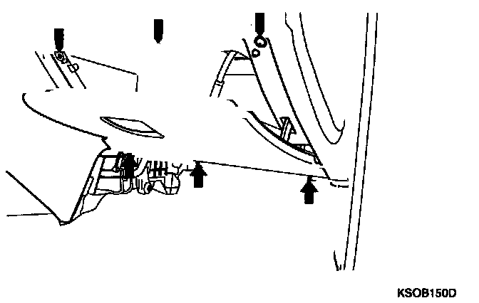 9. Disconnect the hood release cable and connectors from the cover. After removing the 2 screws, remove the crash pad under cover of the passenger compartment.