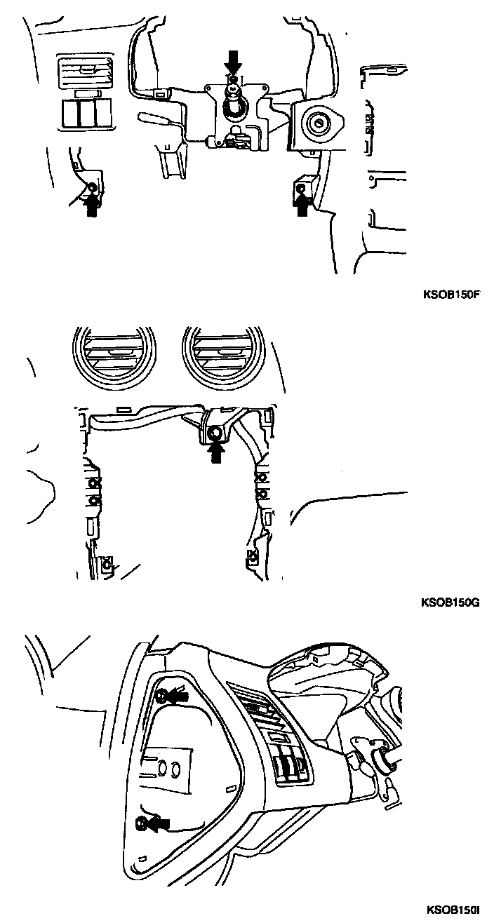 7. Remove the 3 screws holding the steering column lower shroud and then remove the steering column lower and upper shroud.