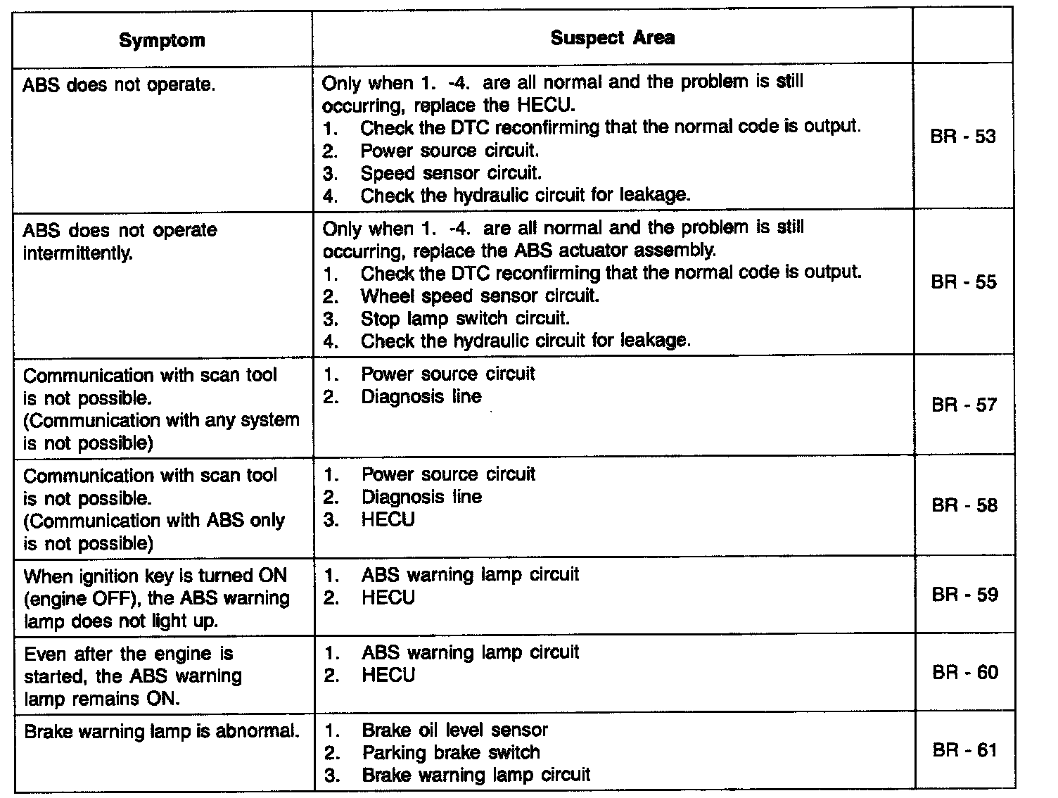 PROBLEM SYMPTOMS TABLEIf a normal code is displayed during the DTC check but the problem still occurs, check the circuits for each problem symptom in the order given in the table below and proceed to the relevant troubleshooting procedure.