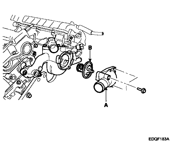 4. Remove water inlet(A) and thermostat(B).