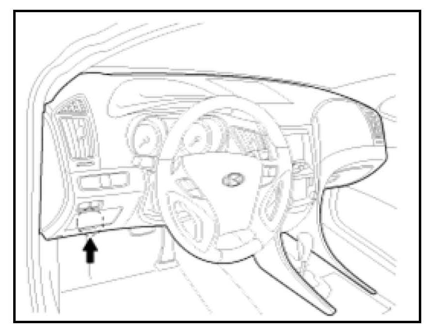 1. Connect the DLC cable of GDS to the data link connector (16 pins) on the driver side crash pad lower panel and turn the GDS power on.