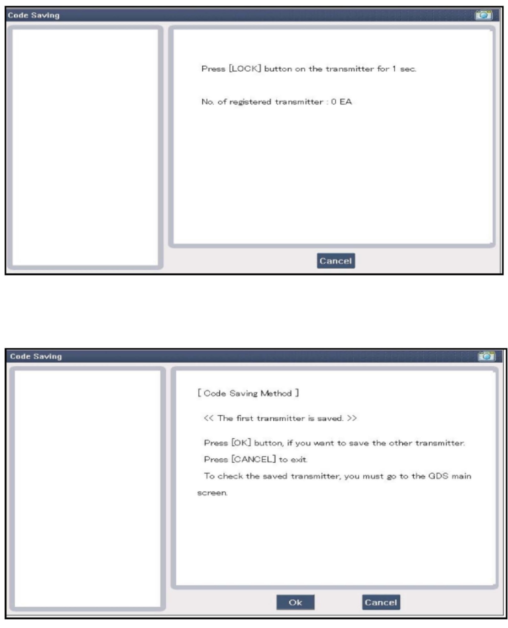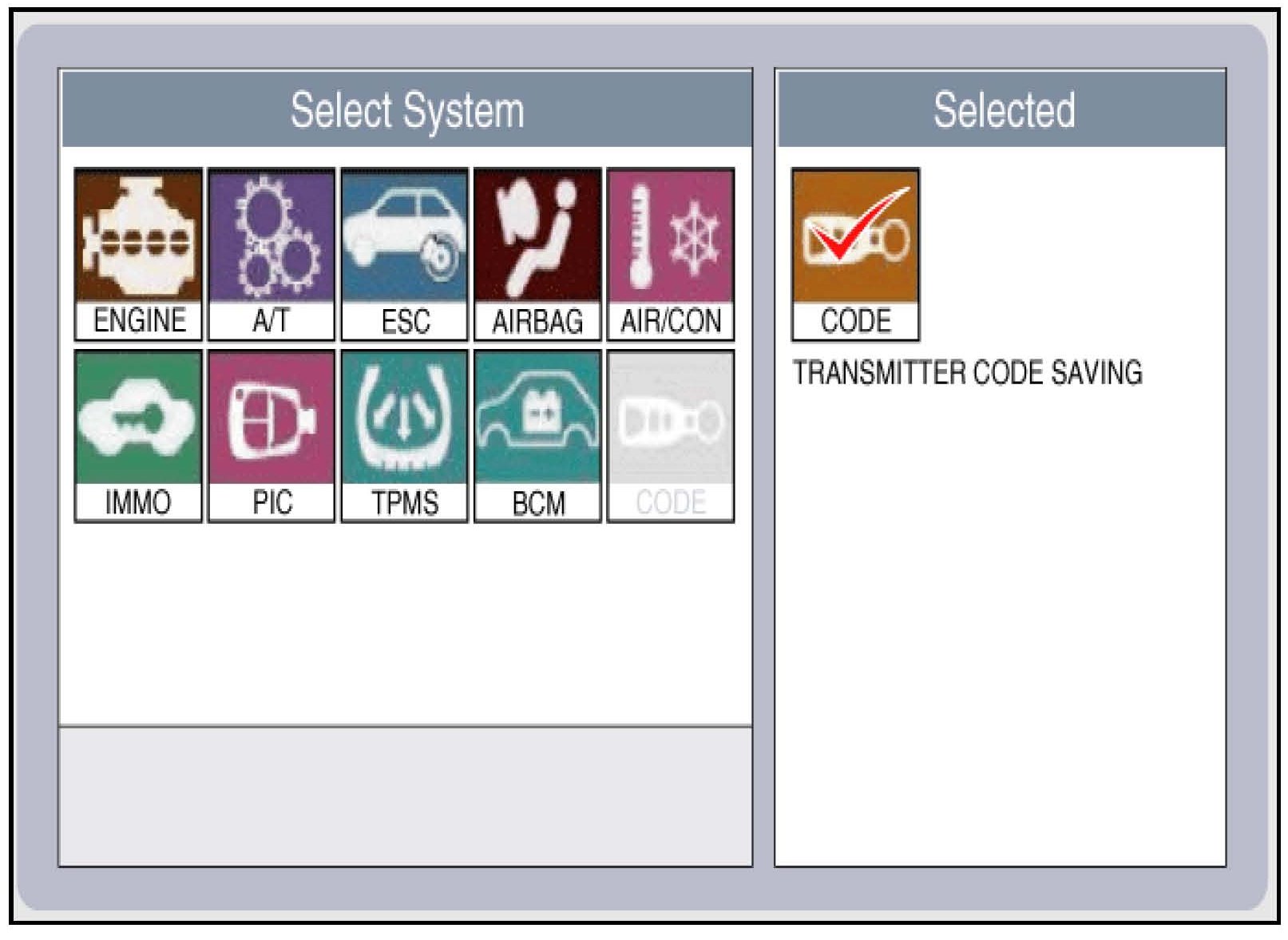 Always consult the latest Hyundai Service publications as the maximum number of programmable fobs and procedures varies depending on the model. Also note that some models, such as the MC Accent, code saving is done through "BCM" and not through "Transmitter Code" GDS selections.