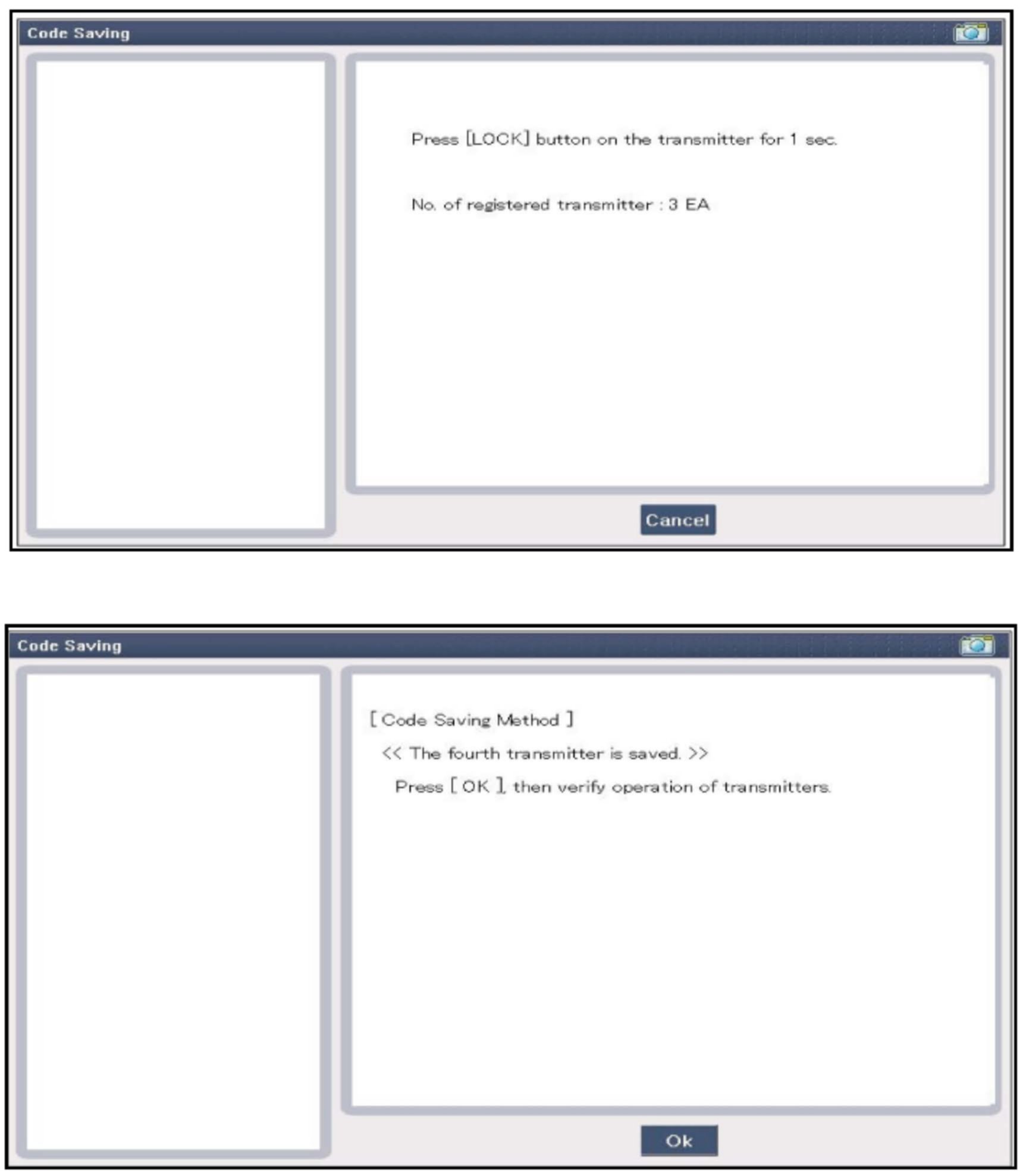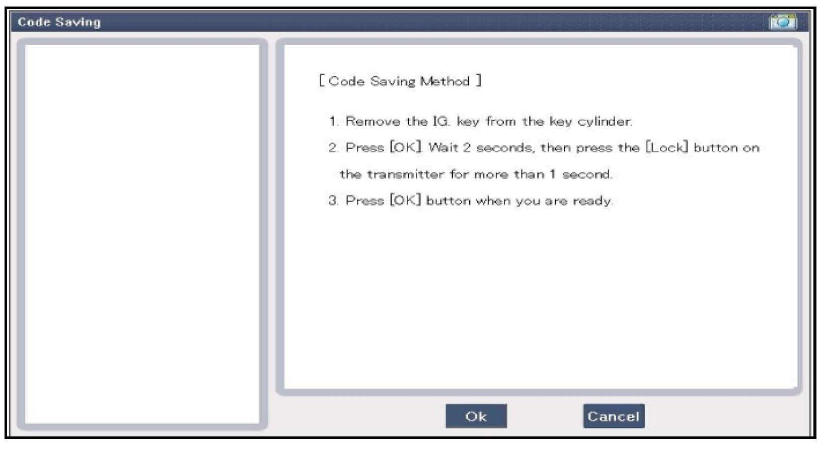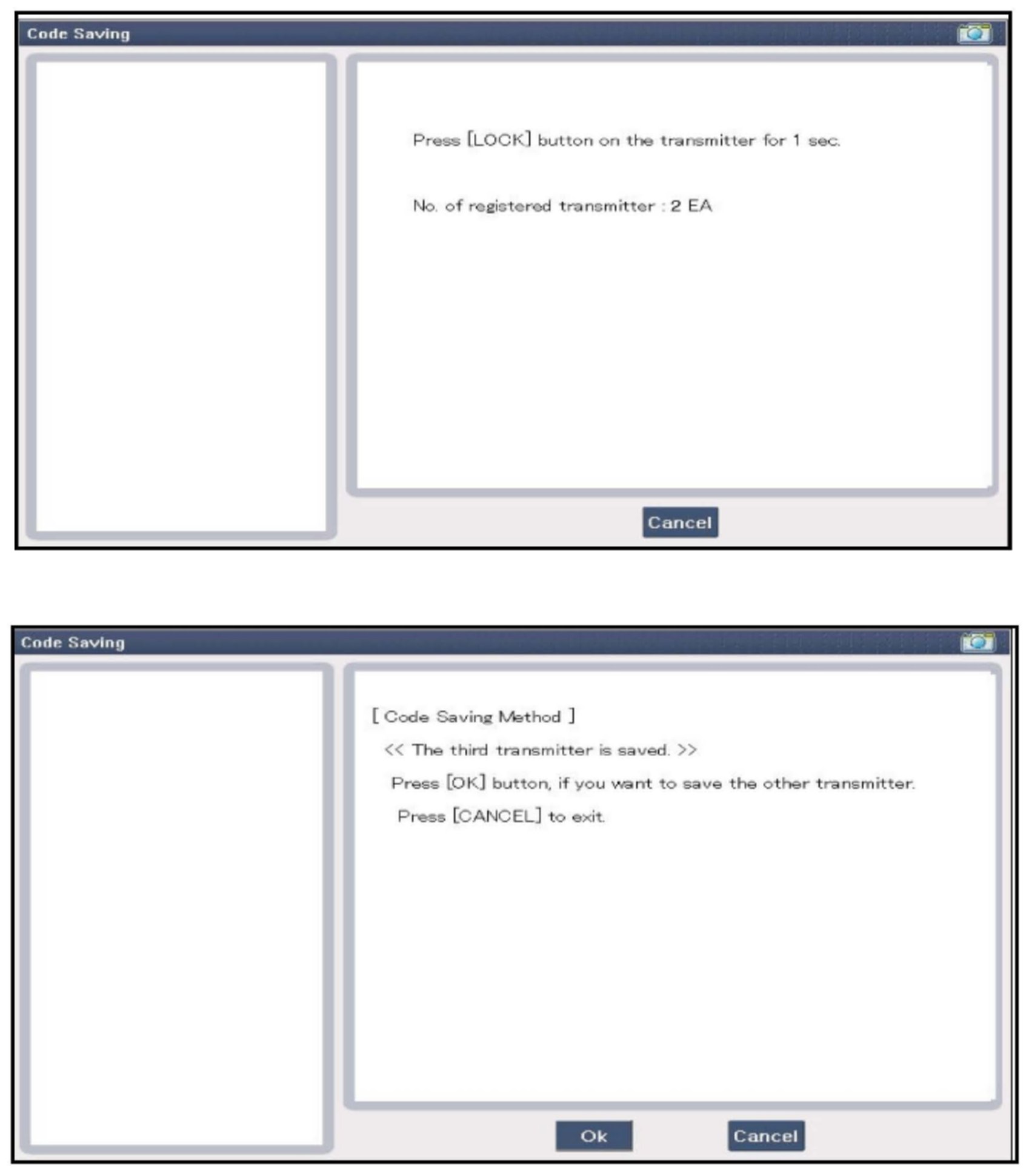 3. After selecting the "CODE SAVING" menu, press the "ENTER" key, then the screen will appear as shown above.