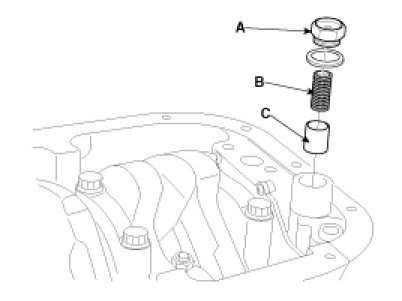 Remove the plug(A), spring(B) and relief plunger(C).