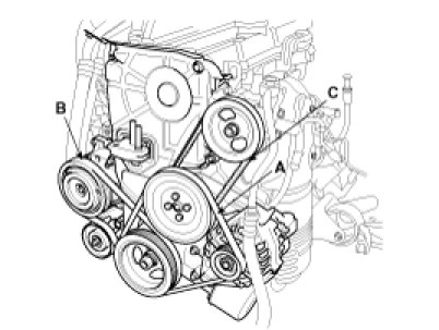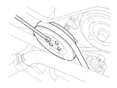 Rotate crankshaft in clockwise direction to set 1st piston on top dead center (TDC) and rotate crankshaft in counterclockwise to 90° then measure the belt tension in the middle of tension side span (in arrow direction of above illustration) by free vibration method.