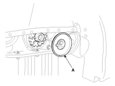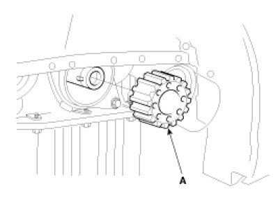 11. Install the flange and crankshaft pulley(A), and then tighten crankshaft pulley bolt.