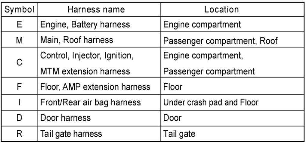 * It depends on vehicles, it is necessary to check the harness name symbol on the harness layouts for detailed symbol.