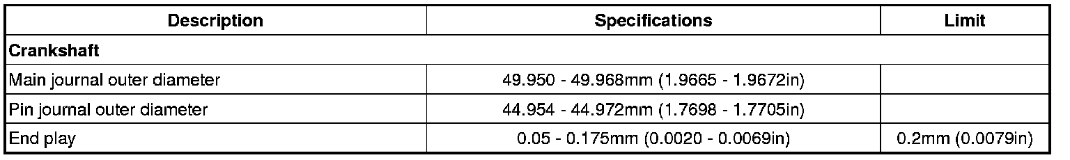 Main journal diameter 49.950 - 49.968 mm (1.9665 - 1.9672 in)