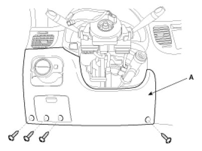 5. Loosen the screws (A), and then remove the steering column upper and lower shrouds.