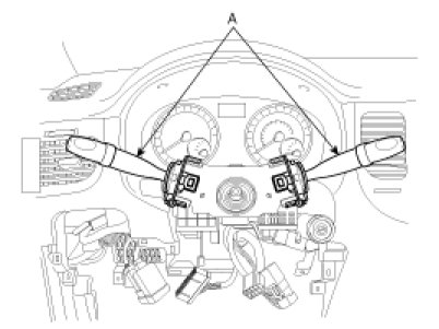 8. Disconnect the connectors and remove the multifunction switch (A).