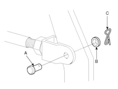 1. Remove the clevis pin (A), washer (B), and snap pin (C).