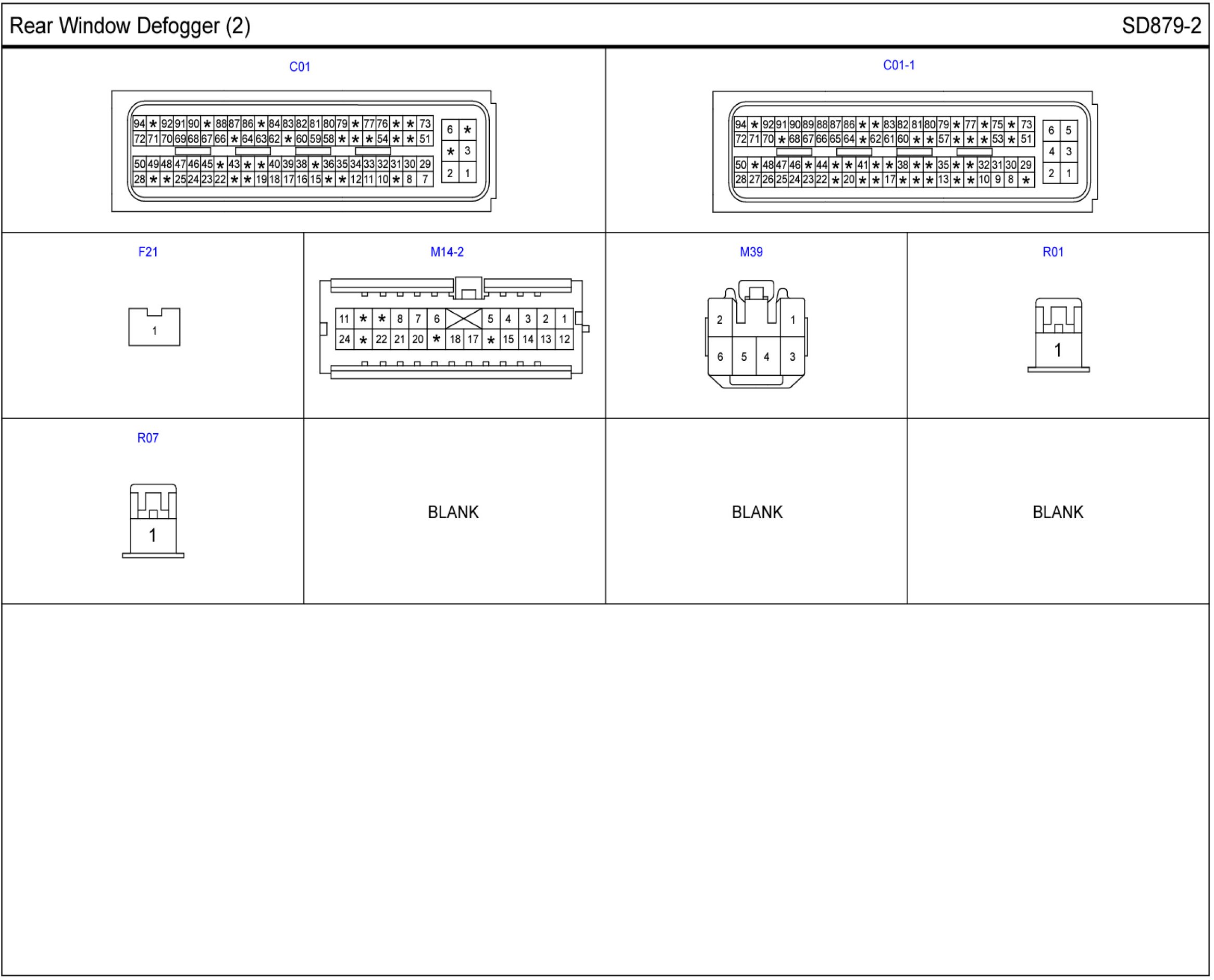 Rear Window Defogger Connector Pin Outs: