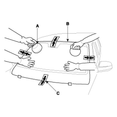 3. Pull down the front portion of the headliner. Take care not to bend the headliner excessively, or you may crease or break it.