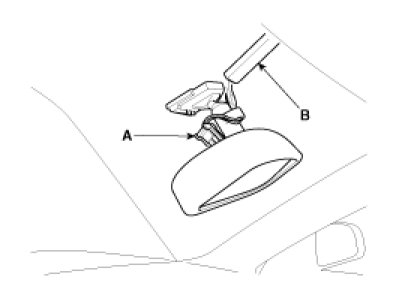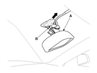 1. Push the inside rear view mirror base down to remove the inside rear view mirror assembly (A) after removing the mirror wire cover.
