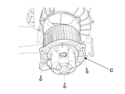 4. Remove the blower motor (C) after loosening the mounting screws.