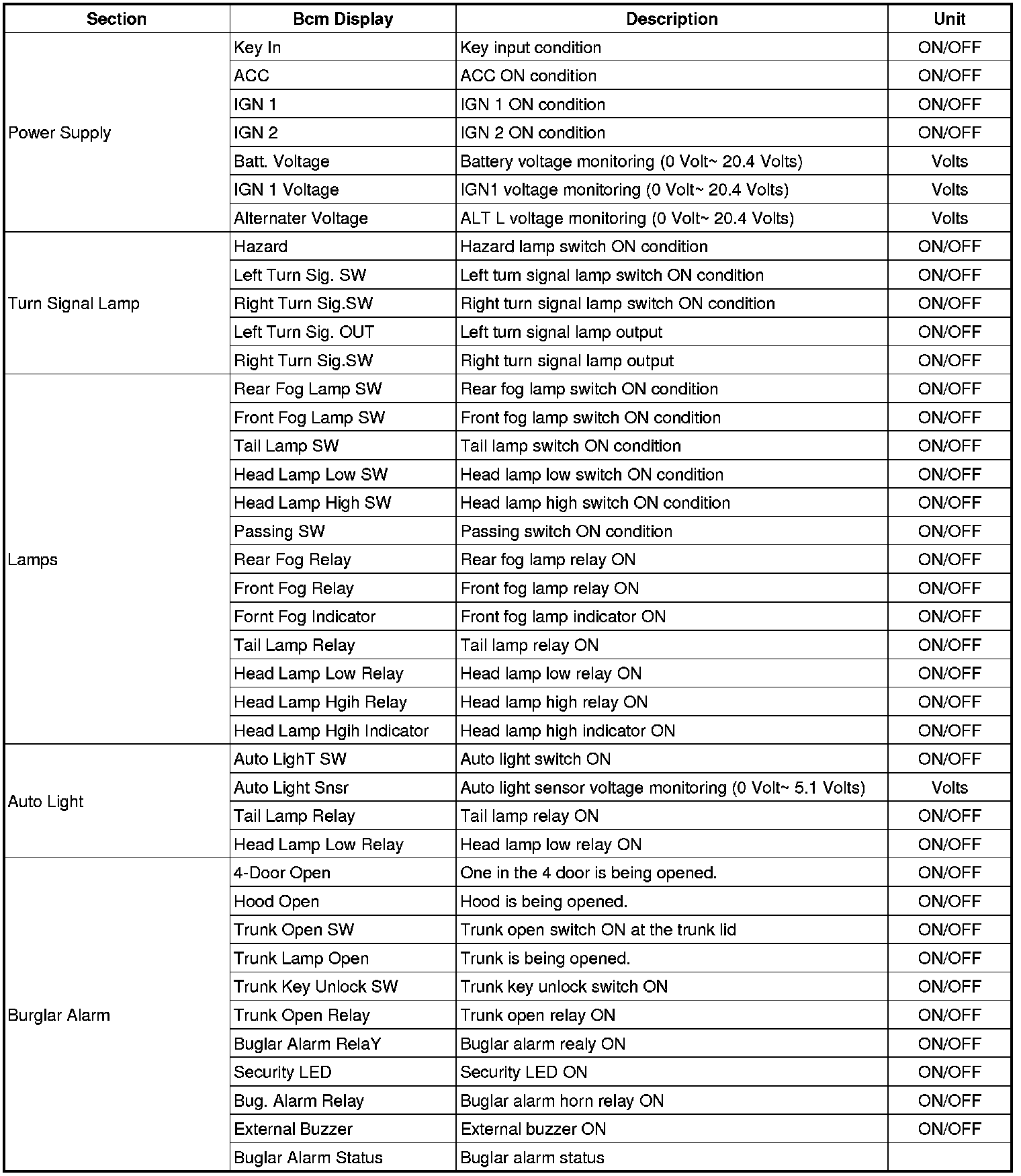 2. Only BCM communicates directly with scan tool, and the other units perform self-diagnostic function by BCM through the mediator of CAN or LIN.