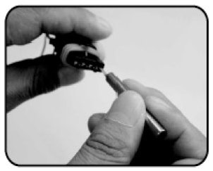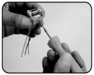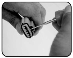 - Flat tip type: Removal of single locking male/female terminal from the connector.