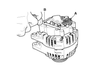 3. Loosen the mounting bolts(B) and disconnect the brush holder assembly(C).