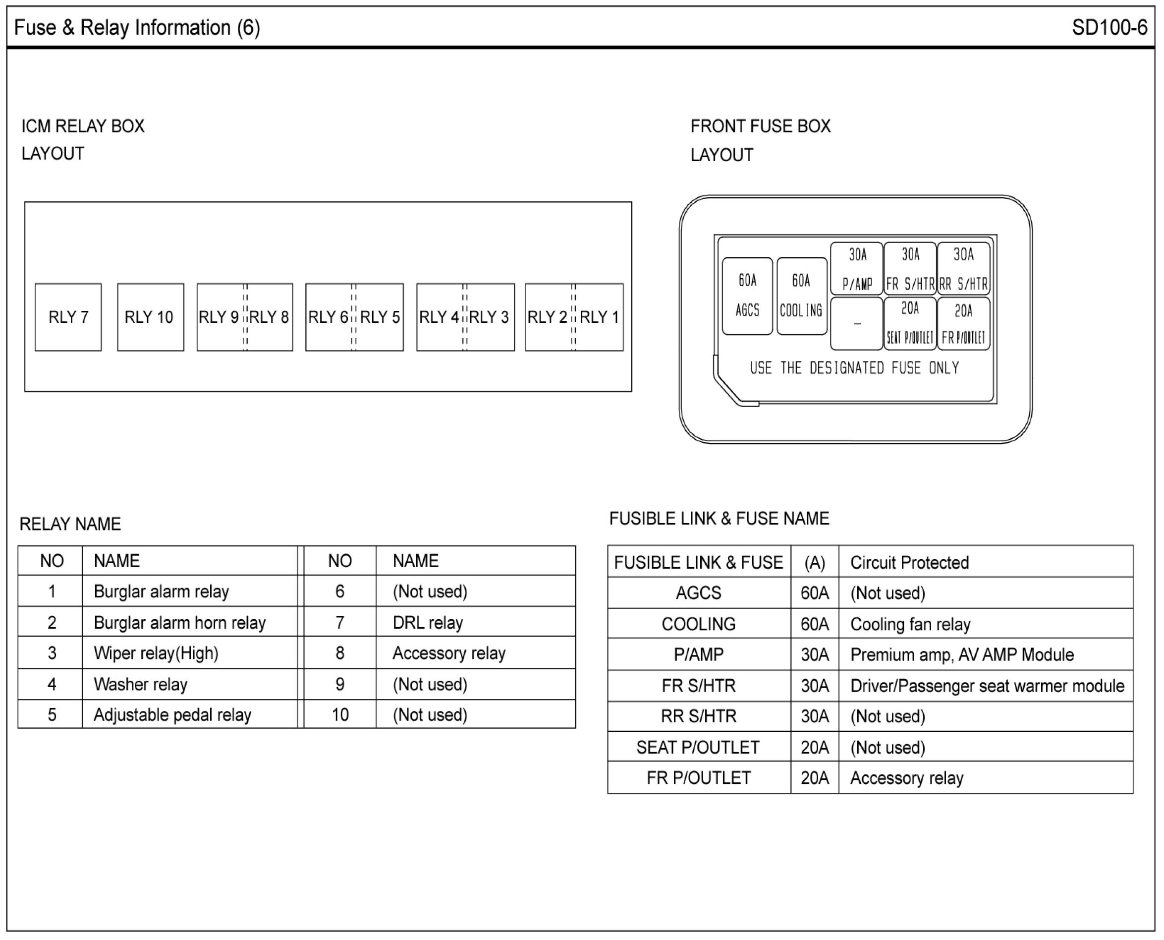 ICM Relay Box Layout / Front Fuse Box Layout:
