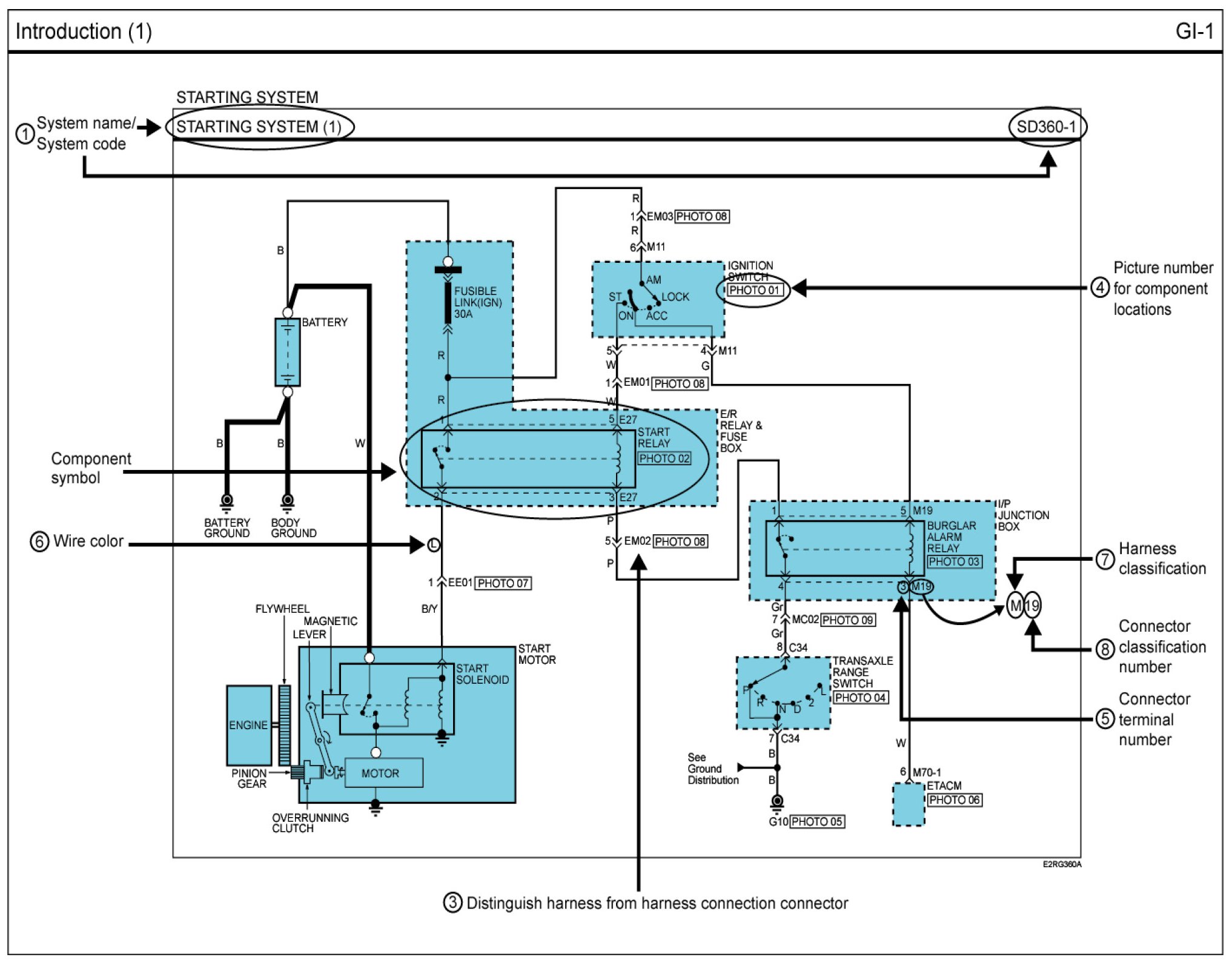 - Each page is consisted of circuits by system. This schematic diagram includes the path of electricity flow, connection condition for each switch, and the function of other relevant circuits at once. It is applicable to real service work.