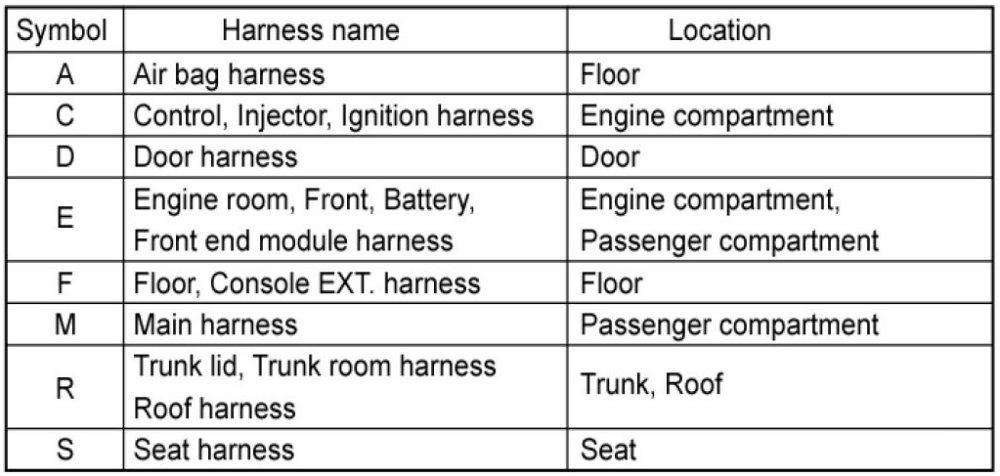 * It depends on vehicles, it is necessary to check the harness name symbol on the harness layouts for detailed symbol.