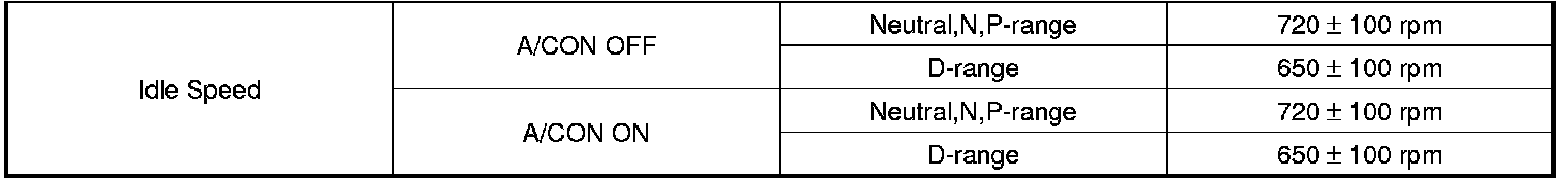 Idle Speed: Specifications