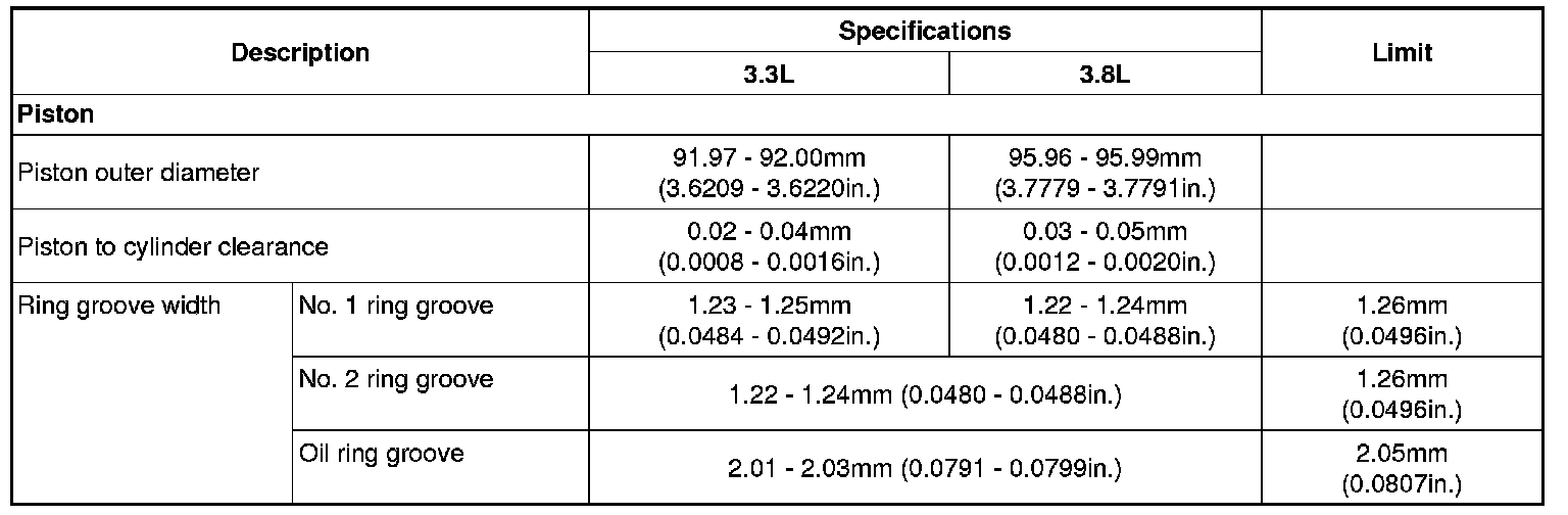 Piston Dimensions and Clearances