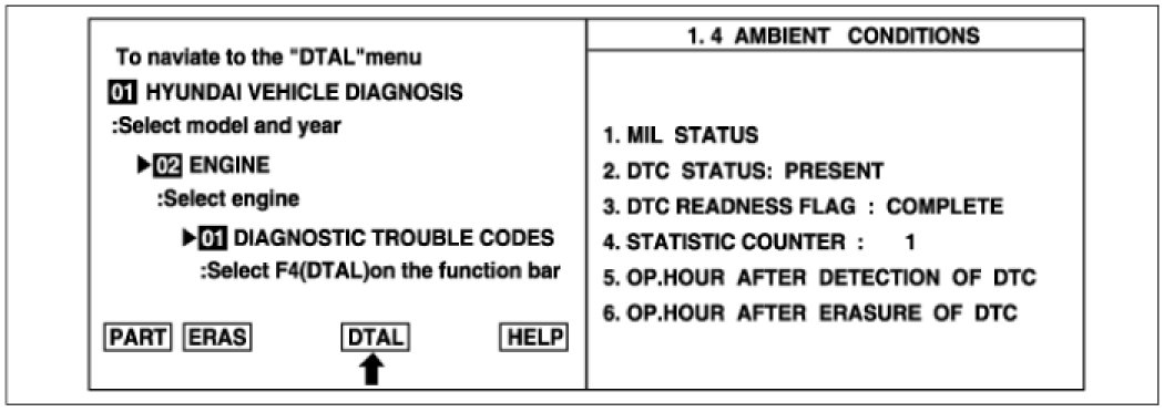 2. Press F4 (DTAL) to select DTC information from the DTCs menu.