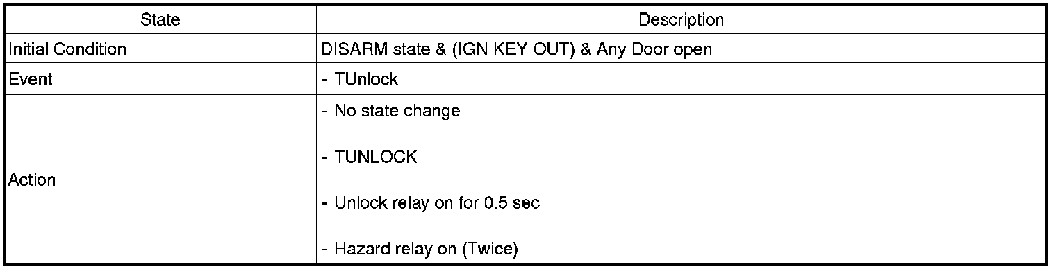 1. UNLOCK signal output with DOOR UNLOCK SW by power window and TRUNK SW is prohibited in case of TLOCK under IGN KEY OFF.