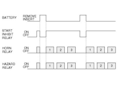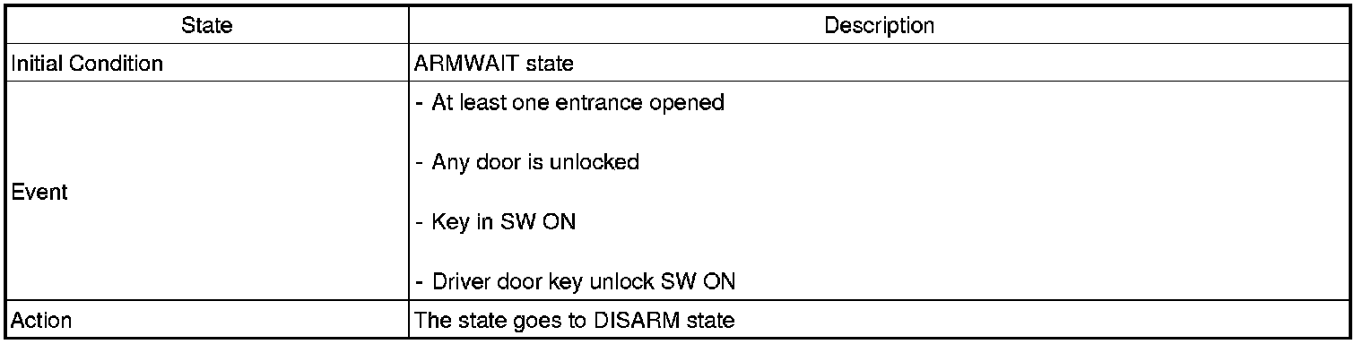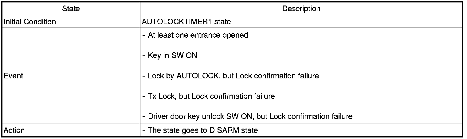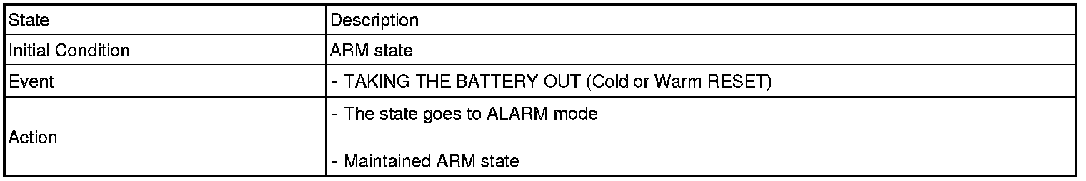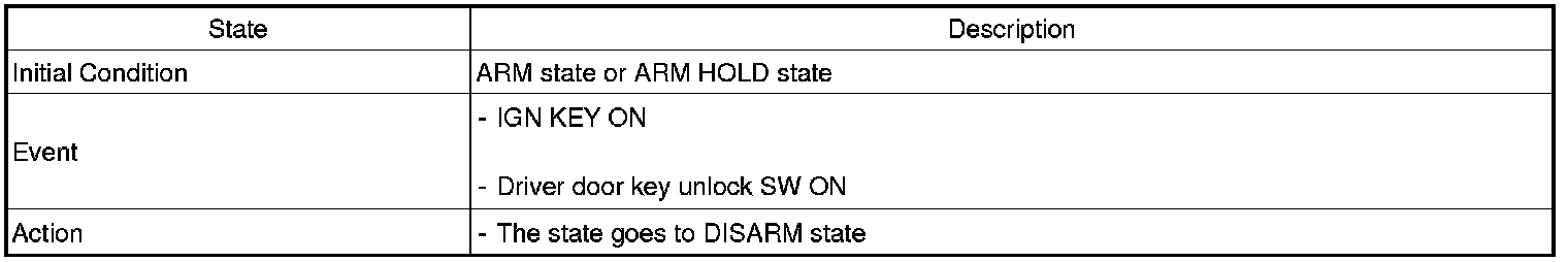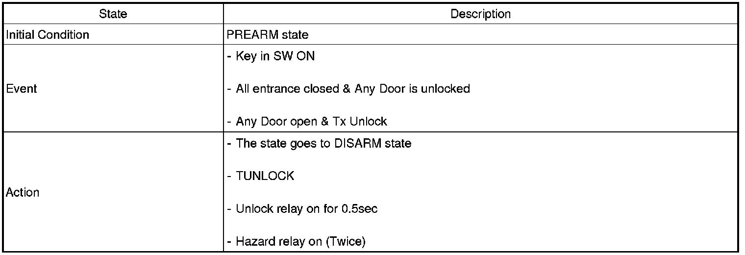 2. PANIC alarm is turned OFF if (TLOCK/UNLOCK/PANIC/TRUNK UNLOCK /KEY IN /DOOR KEY LOCK/DOOR KEY UNLOCK / TRUNK KEY UNLOCK ) signals are received during PANIC alarm.