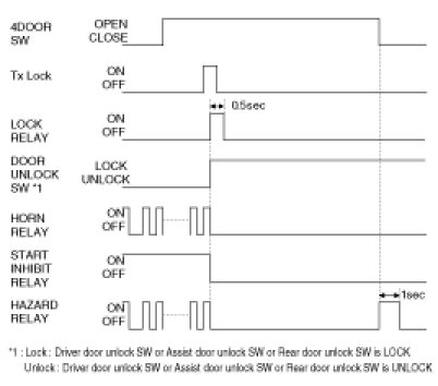 2. UNLOCK signal output with DOOR UNLOCK SW by power window and TRUNK SW is inhibited in case of DOOR LOCK with DOOR KEY under IGN KEY OFF.