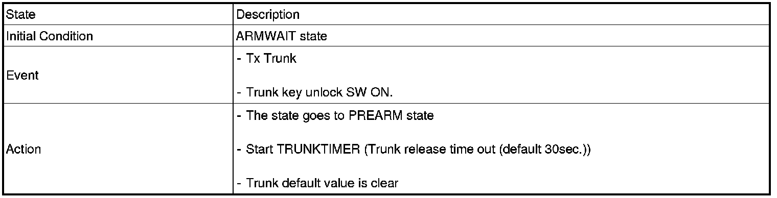 3. In ARM mode, signal by TRUNK RELEASE SW input is not output.