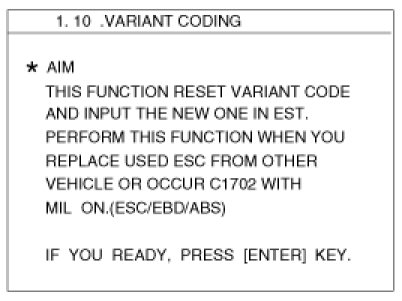 - If the warning lamp(ESC, EBD, ABS) is illuminated, follow the "Variant coding" again.
