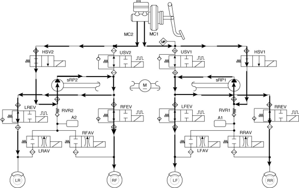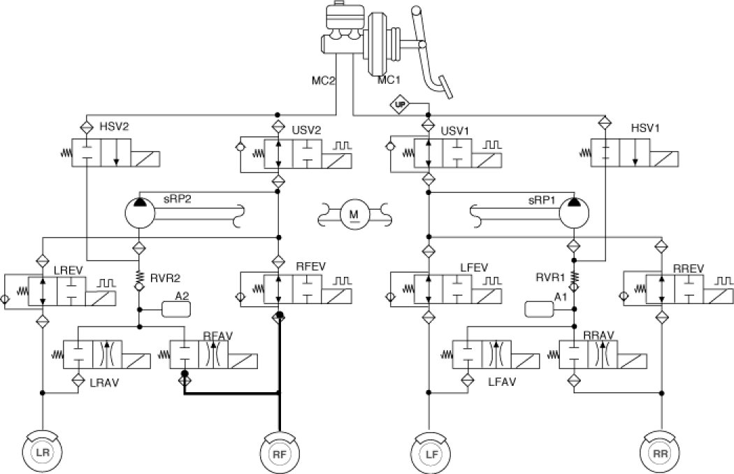 The HECU is programmed with a variant code based on the vehicle powertrain configuration. This variant code is used to determine the appropriate ESC calculations. Variant code programming should be performed whenever an HECU is replaced.