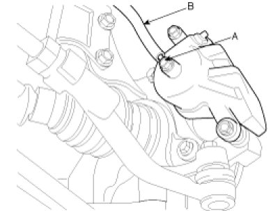 2. Remove the brake hose clip (B), and then remove the brake hose (A).