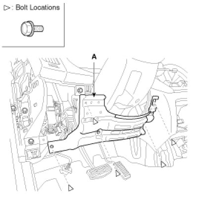 3. After loosening the crash pad lower panel mounting screw, then remove the lower panel (A).