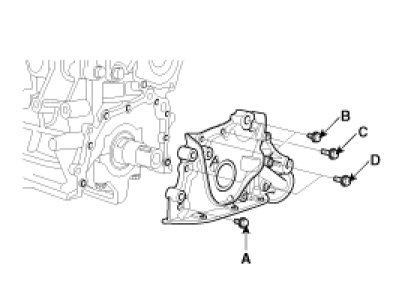 (2) Install the oil pump cover (A) to front case with the 7 screws(B).
