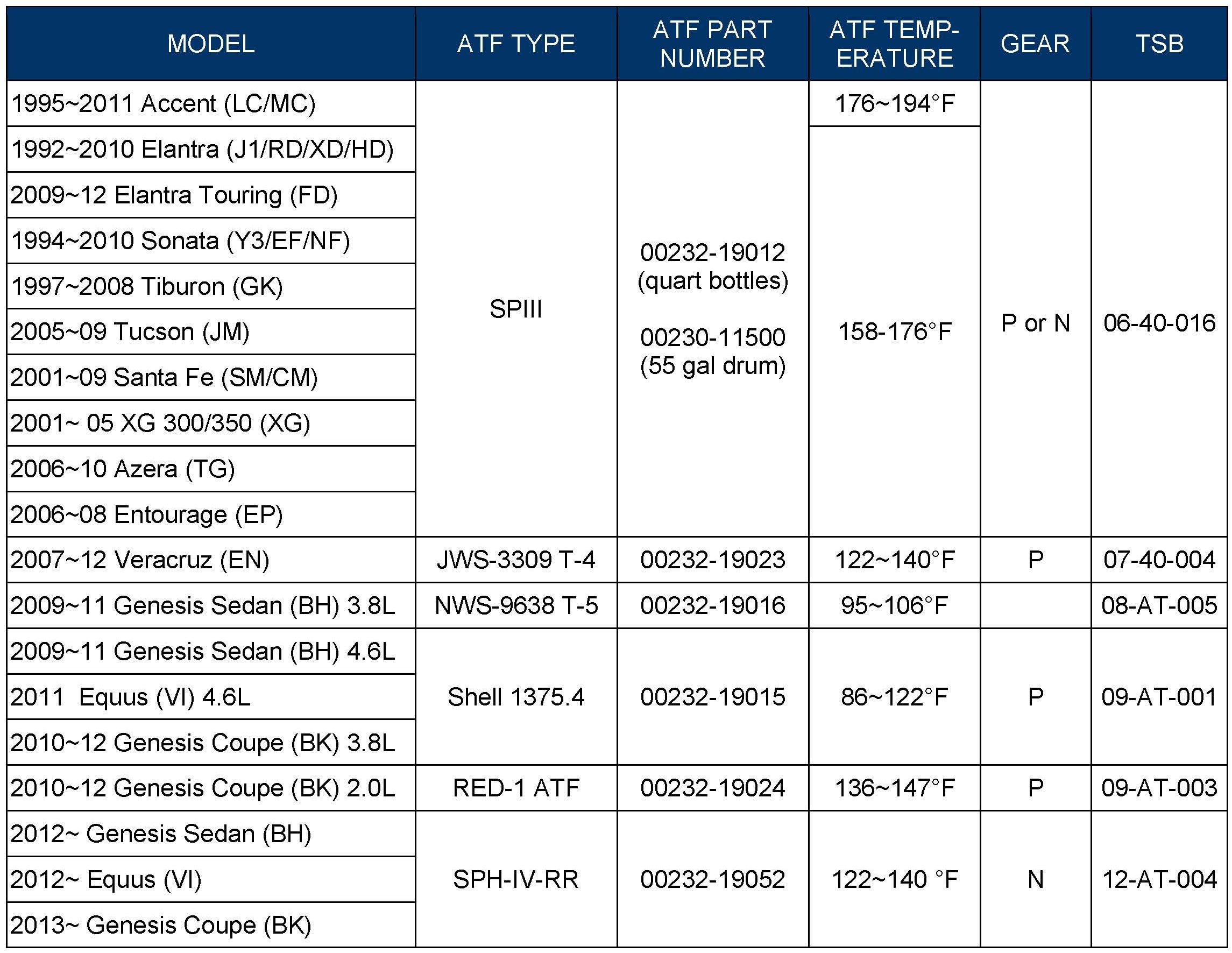 HYUNDAI SPECIFIED ATF AND ADDITIVE USAGE