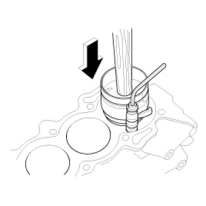 (2) Install the ring compressor, check that the bearing is securely in place, then position the piston in the cylinder, and tap it in using the wooden handle of a hammer.