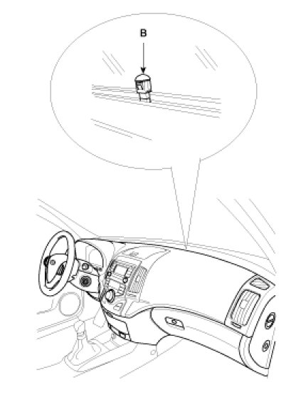 With the (-) driver, remove the photo sensor (B) from the center of defrost nozzle.