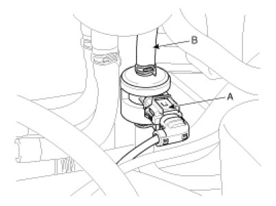3. Disconnect the vapor hose (B) which is connected with the intake manifold from the PCSV.