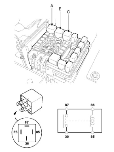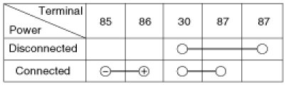 1. There should be continuity between the No.30 and No.87 terminals when power and ground are connected to the No.85 and No.86 terminals.