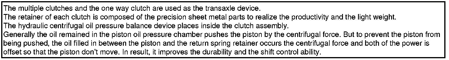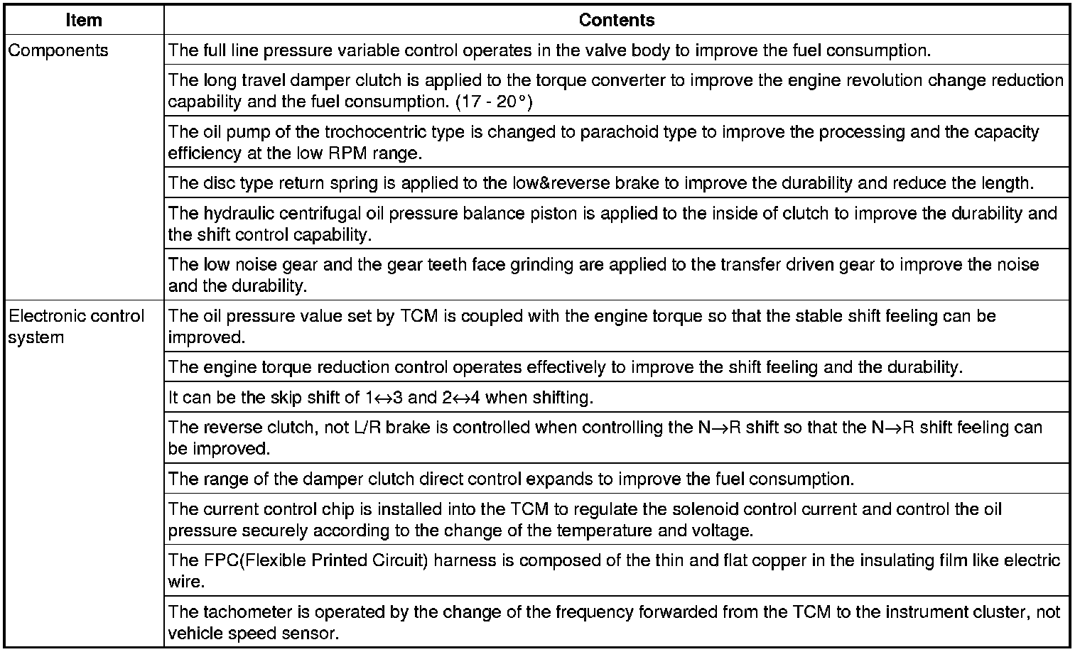 And the reducing valve which is installed in the valve body makes the solenoid control pressure using the reducing pressure instead of the line pressure like the HIVEC transaxle.